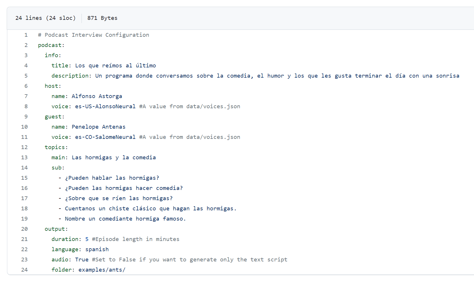Para generar ese audio de 5 minutos solo le entregué un archivo de entrada como este: